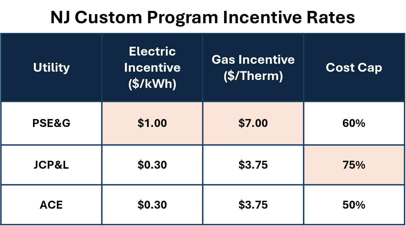 Across the U.S., most large utilities offer some form of custom rebate program intended to fund system-level efficiency improvements that fall outside prescriptive measures. New Jersey is a useful example because these programs are currently very strong.